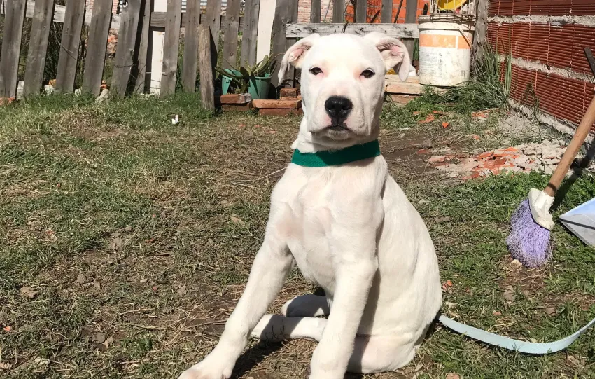 "Tadeo es un dogo blanco y tiene cinco meses, pero es enorme para su edad, le gusta mucho jugar y a la mañana ya pide para salir afuera y te empieza a saltar. También ama pasear", describe.