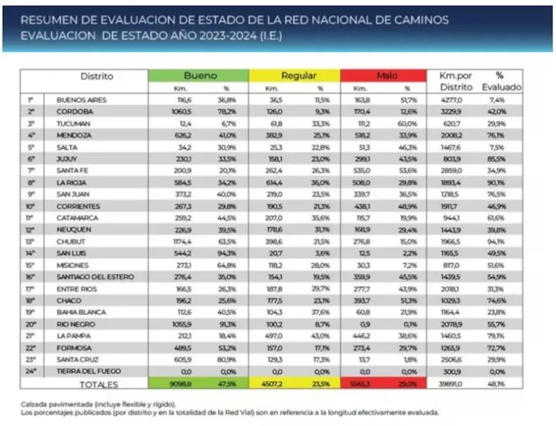 Según datos brindados por Vialidad Nacional, el 51% de las rutas nacionales en territorio chaqueño se encuentran en mal estado; el 25,6% en buen estado, y el 23,1% en estado regular. Esta cifra posiciona a Chaco como la tercera provincia con mayor proporción de rutas nacionales deterioradas, sobre un total de 1.029 kilómetros relevados.