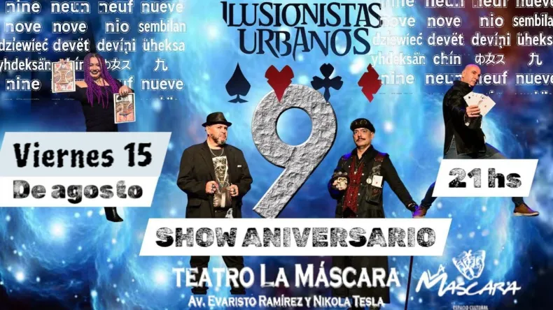 El próximo viernes 15 de agosto, desde las 21, Ilusionistas Urbanos invita a toda la comunidad a sumarse a los festejos por sus 9 años. La cita será en La Máscara Teatro, ubicado en avenida Evaristo Ramírez y Nikola Tesla. Las entradas ya están a la venta.