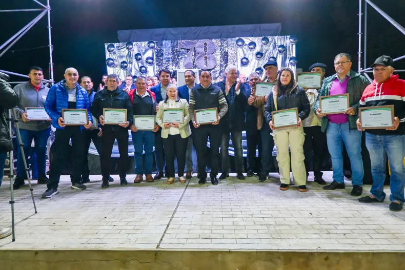 En representación del Gobierno provincial, el ministro de Obras e Infraestructura, Hugo Domínguez, el ministro de Salud, Sergio Rodríguez y el secretario de Asuntos Estratégicos, Marcos Resico, acompañaron anoche al intendente Gustavo Karasiuk y a la comunidad en el acto central por el 78° aniversario de Pampa del Indio.