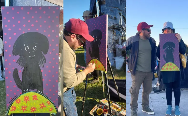 El evento incluyó un desfile de mascotas, juegos como el tradicional "baile de las sillas", música en vivo a cargo de un DJ, y la presencia del artista Luciano Acosta, quien pintó en vivo un retrato de Tyrion, el perro homenajeado.