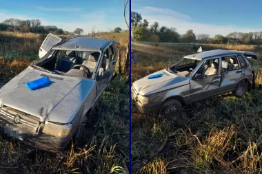 El hecho sucedió cerca de las 9 de la mañana, a la altura del kilómetro 3. Según señaló el conductor, perdió el control del vehículo al intentar esquivar un animal silvestre en medio del camino. Trató de maniobrar, pero el auto volcó en la banquina, sufriendo notables daños materiales.