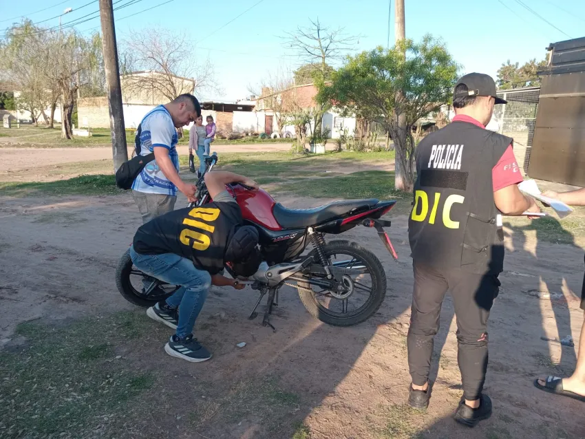 Este martes, alrededor de las 10:45, efectivos de la División Investigaciones secuestraron dos motocicletas en la intersección de avenida España y Fortín Los Pozos, en el marco de causas por "robo calificado" y "estafa" con intervención judicial.