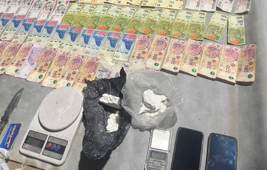 En el lugar, la Policía secuestró 175 gramos de cocaína fraccionada en varias bochas, $ 98.400, una balanza de precisión, dos teléfonos celulares en funcionamiento, un cuchillo con restos de la sustancia y varios recortes de polietileno.