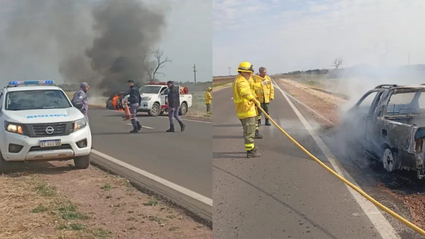 Esta mañana, la Comisaría de Los Frentones tomó conocimiento de un incendio en el kilómetro 280 de la Ruta 16. Al llegar al sitio, los agentes constataron un vehículo que ardía en llamas, motivo por el cual se hizo presente el cuerpo de bomberos, quienes lograron extinguir el foco ígneo.