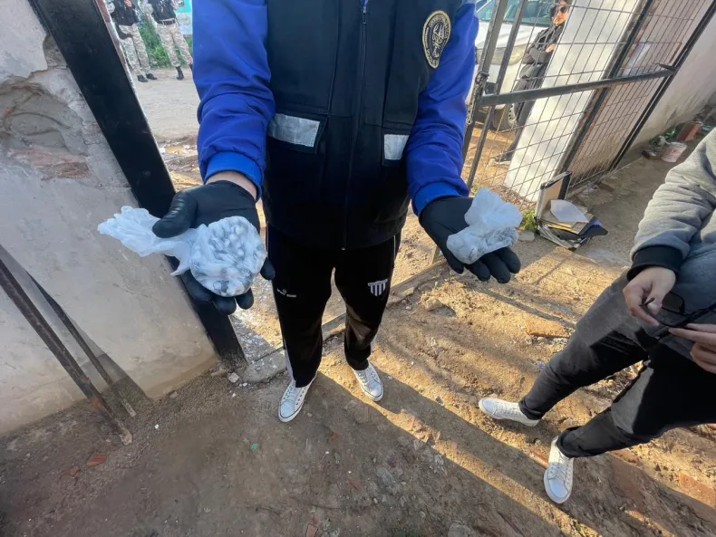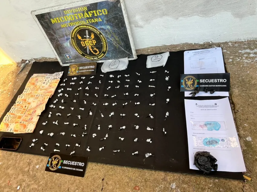 Durante el registro del domicilio se secuestraron: envoltorios de polietileno con sustancia blanca positiva para cocaína, con un peso total de 28,1 gramos. 3 envoltorios de polietileno con sustancia vegetal positiva para marihuana, con un peso total de 2,3 gramos. Recortes de polietileno color negro. Un teléfono celular marca Redmi modelo 12. Dinero en efectivo por $47.500.