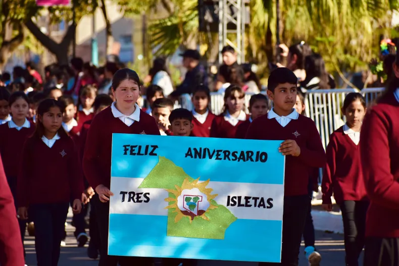 El gobernador Leandro Zdero acompañó este miércoles a la intendente Marcela Duarte y a la comunidad de Tres Isletas, en el 88° aniversario de la localidad, donde también entregó Títulos de Propiedad a productores rurales y, con la presencia del administrador General de la Dirección de Vialidad Provincial (DVP), Omar Canela, firmaron un convenio para ejecutar cuadras de pavimento. Tras repasar la historia de la comunidad y la superación de las adversidades de forma mancomunada, Zdero aseguró: "Estoy convencido que el camino de un trabajo conjunto, es la salida del Chaco".