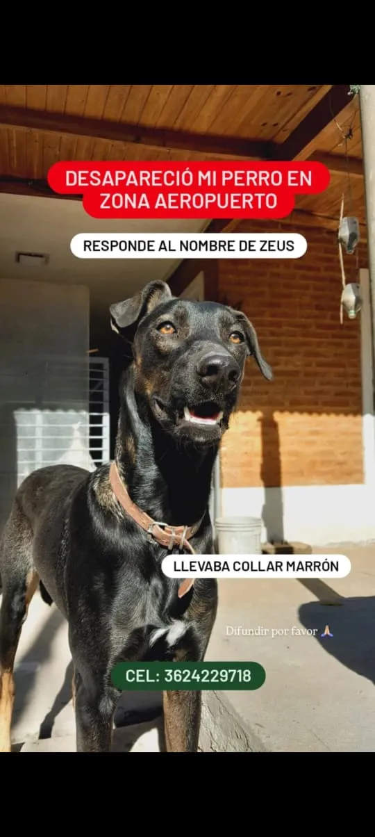 Zeus se perdió el sábado 23 de agosto en inmediaciones del aeropuerto de Resistencia, cuando salió como todas las mañanas a pasear con otros perros de la casa. Llevaba puesto un collar marrón. "Lo estamos buscando por todos lados, su familia lo extraña mucho", señalaron. Quienes puedan aportar datos pueden comunicarse al 3624 229718.