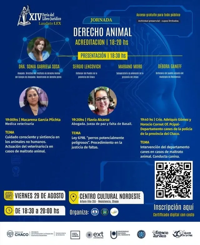 En esta misma línea, el viernes 29 de agosto, de 18.30 a 20 horas, se llevará a cabo en el Centro Cultural Nordeste una jornada de Derecho Animal en la que distintos disertantes expondrán sobre el marco jurídico de la protección animal. La actividad será libre y gratuita.