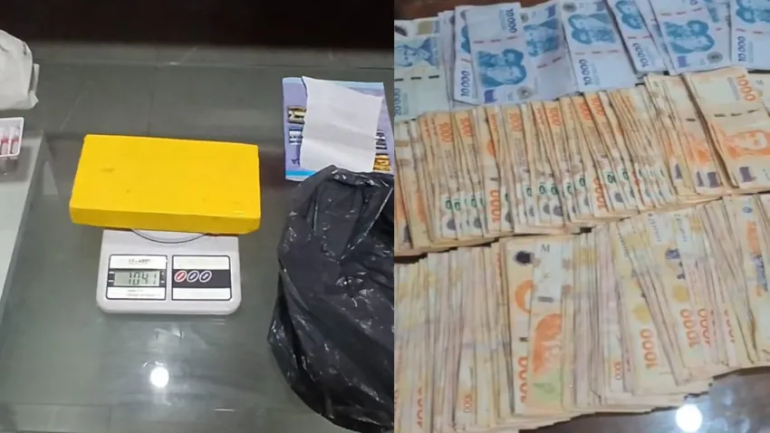 Según informó la fuerza, se secuestraron varios trozos compactos y un ladrillo de cocaína envuelto en cinta de embalar amarilla, con un peso total de 1.522 gramos. Además, se incautaron 1.201.000 pesos en efectivo, tres celulares iPhone y dos radios handys.
