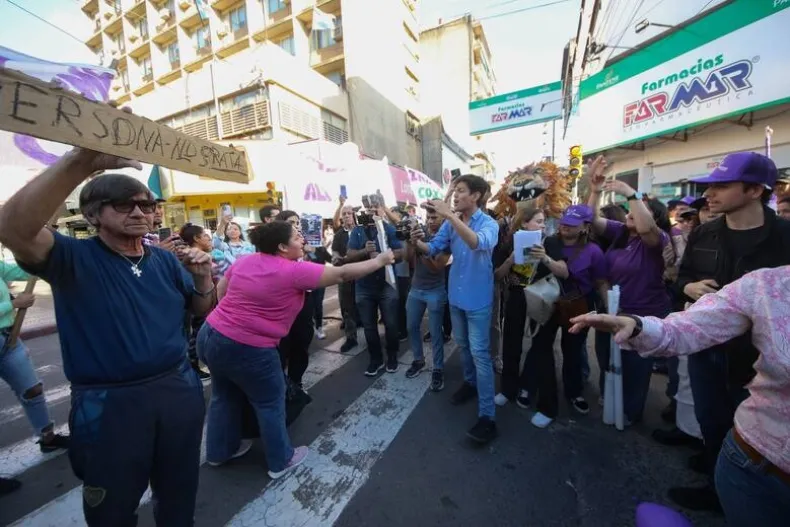 "Le roban a los jubilados y a los discapacitados. La hermana de Milei le está robando al pueblo", gritó una mujer identificada como militante del oficialismo provincial, alineada con el gobernador Gustavo Valdés.