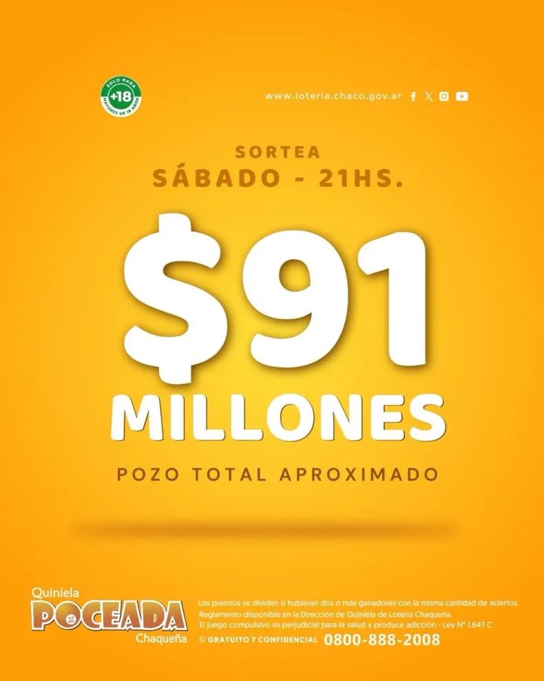 La Poceada Chaqueña quedó vacante y el pozo para el sábado supera los $ 91 millones