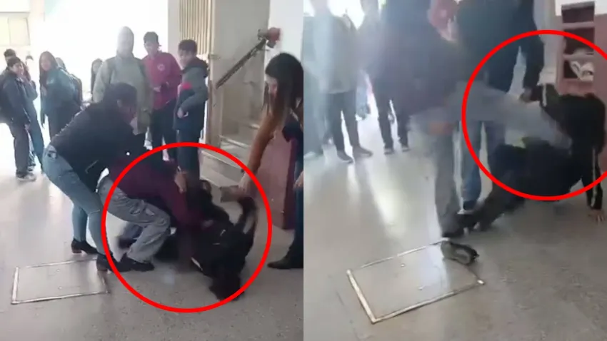 Según se observa en un video que fue viralizado en las redes sociales, una de las alumnas recibió una patada en el rostro mientras era asistida por una profesora que logro intervenir para evitar que las alumnas continúen con la agresión.