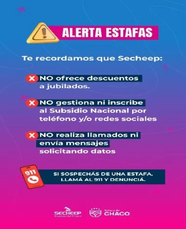 De la misma forma, informaron que no ofrece descuentos a jubilados y/o pensionados ni gestiona o inscribe al subsidio nacional. Se recomienda que ante estas situaciones no brinden datos personales ni realicen transferencias de dinero.