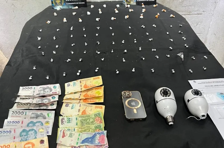 El allanamiento fue ordenado por el Juzgado de Garantías N°5, a pedido de la Fiscalía de Investigación Antidrogas N°1. En el lugar se incautaron 66 envoltorios con 35 gramos de cocaína y otros 25 envoltorios con 19 gramos, lo que arrojó un total de 54 gramos. También se secuestraron $39.300 en efectivo, un iPhone 13 y dos cámaras de filmación.
