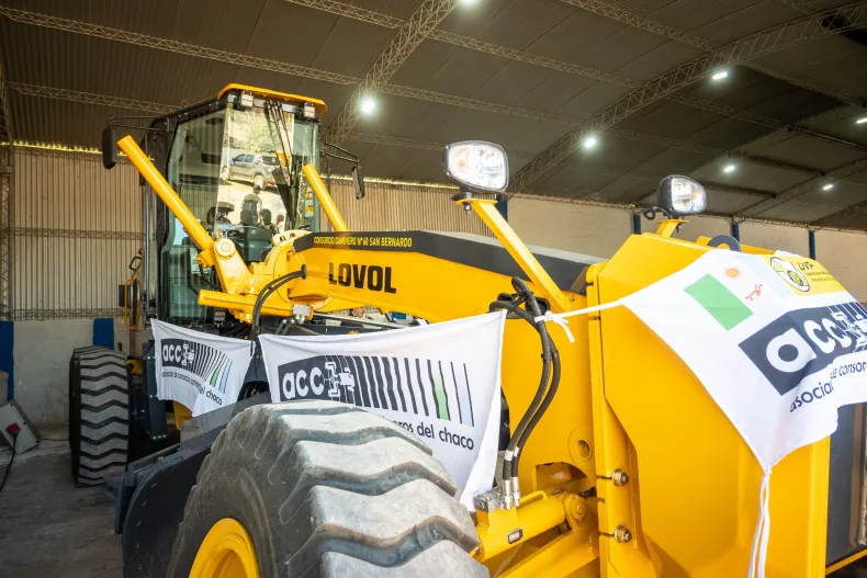 Se trata de una motoniveladora marca LOVOL modelo FPY 170 motor Cummins al Consorcio Caminero N°60. También estuvieron presentes el ministro de la Producción y el Desarrollo Sostenible, Oscar Dudik; el presidente de la Asociación de Consorcios Camineros, Julio Fantín y el presidente del Consorcio Caminero N°60, Walter Tour.