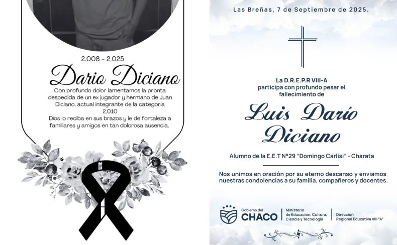 La comunidad educativa y vecinos de Charata continúan expresando su profundo dolor por la muerte de Luis Darío Diciano, el adolescente de 17 años que perdió la vida en un accidente de tránsito ocurrido en la madrugada de este domingo 7, sobre la Ruta Nacional 89.