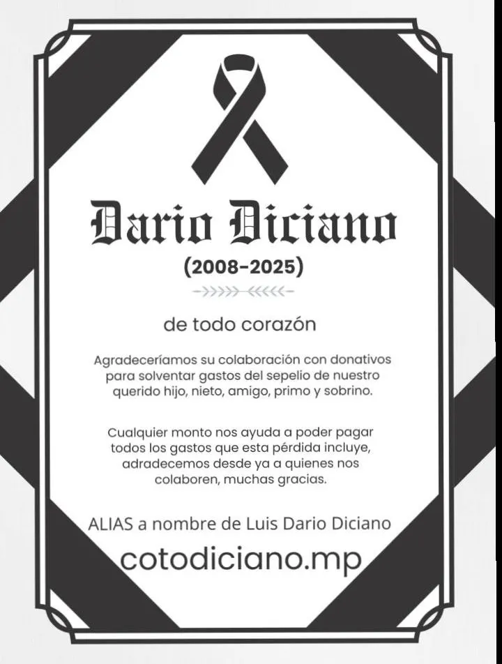 A raíz de la repentina pérdida y las dificultades económicas que enfrentan, la familia lanzó además una colecta solidaria para poder cubrir los gastos del sepelio. La tía del joven informó a Diario TAG que aún no lograron reunir el total del dinero y que hasta mañana esperan recibir colaboraciones en la casa velatoria.