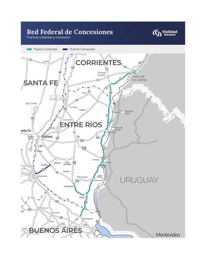 Los tramos incluidos corresponden a los corredores Oriental y Conexión, que abarcan las rutas nacionales 12, 14, 135, A-015, 117 y 174. La adjudicación definirá qué empresas quedarán a cargo de la construcción, obras de mantenimiento, explotación y administración de los corredores.