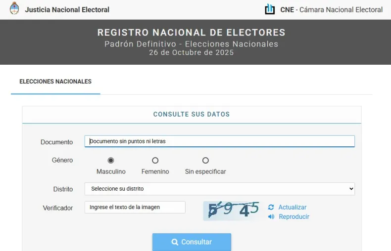 De cara a las elecciones legislativas del próximo 26 de octubre, los ciudadanos ya pueden acceder al padrón electoral definitivo y confirmar con anticipación el establecimiento y la mesa donde deberán emitir su voto.