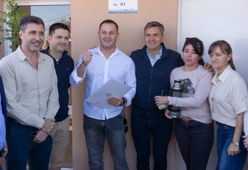 El intendente Bruno Cipolini acompañó este lunes al gobernador Leandro Zdero en la entrega de 26 viviendas en el barrio Santa Rita de Sáenz Peña. Las familias resultaron adjudicatarias en el último sorteo del programa Fo.Pro.Vi. (ex Casa Propia – Construir Futuro).