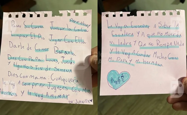 Las cartas que en su momento escribieron las hijas de Cuevas para adoptar a Mora también fueron enviadas a este medio, en donde se ve la "lista de cuidados".