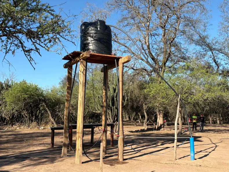 Las familias del paraje El Caudillo, en El Impenetrable chaqueño, cuentan por primera vez con agua potable en sus hogares. La obra se concretó mediante una perforación de más de 210 metros de profundidad, equipada con una bomba sumergible y un tanque elevado, lo que permite extraer agua apta para consumo y asegurar un suministro constante.