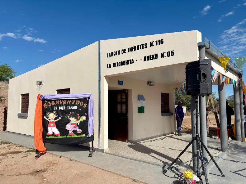 Este miércoles, el gobernador del Chaco, Leandro Zdero, junto a la vicegobernadora Silvana Schneider, la ministra de Educación Sofía Naidenoff y el intendente Vicente González, inauguraron las obras de ampliación y refacción del Anexo 5 del Jardín de Infantes Nº 116 "La Vizcachita", ubicado en la jurisdicción de Misión Nueva Pompeya. La obra fue financiada con recursos provinciales.