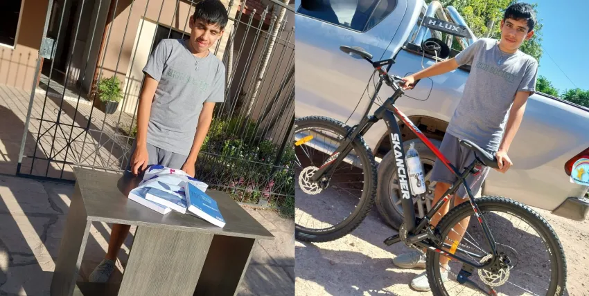 Un adolescente de 15 años recibió donaciones de vecinos y ahora puede ir a clases en bicicleta. La ayuda también llegó a su familia y al merendero donde colabora su madre.