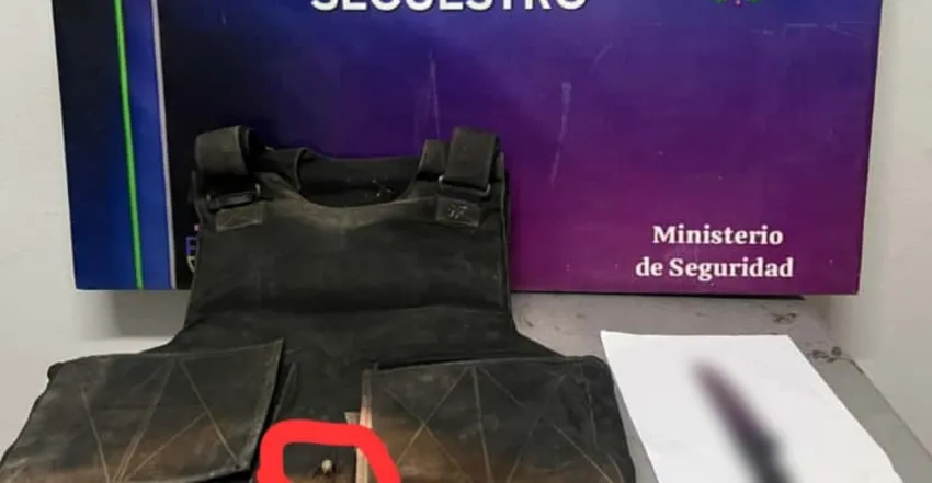 Al arribar al lugar, los uniformados observaron al hombre en la vía pública, quien al notar la presencia policial extrajo un arma blanca y lanzó varios puntazos, uno de los cuales impactó en el chaleco balístico de un empleado policial, para cubrir su huida.