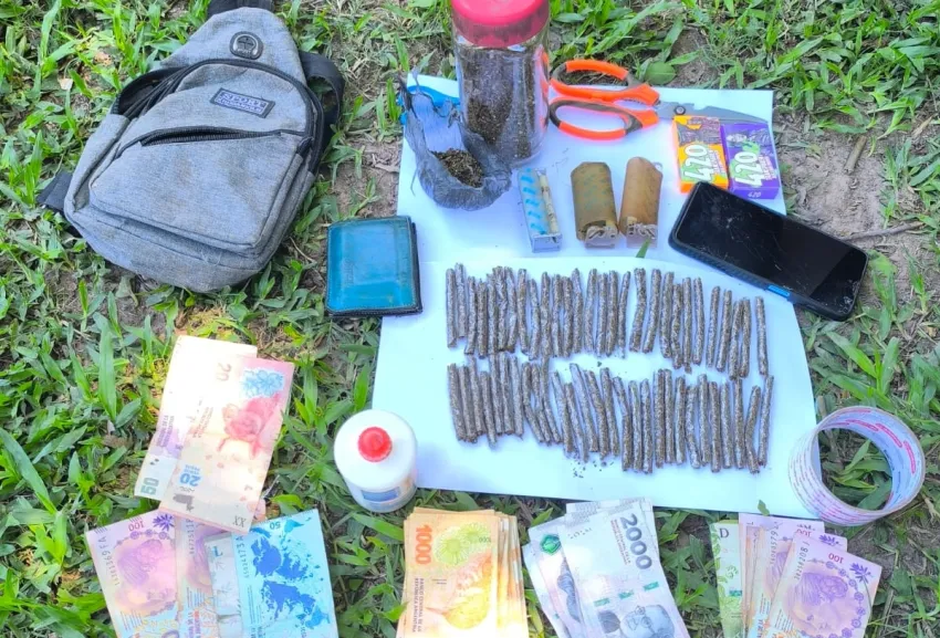 El procedimiento se llevó a cabo alrededor de las 11:30 de este jueves, cuando los efectivos interceptaron al sospechoso y le secuestraron un morral con 56 cigarrillos armados con una sustancia vegetal, una bochita con 8 gramos, un frasco de vidrio con 74 gramos, $40.370 en efectivo, un celular, dos tijeras, tres armadores de cigarrillos y dos cajas de papelillos.