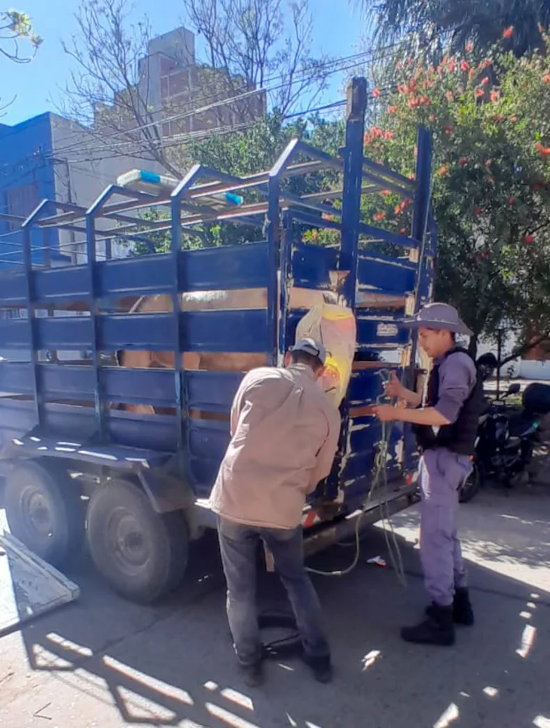 En la intersección de calle Formosa y avenida Rivadavia se procedió al secuestro de un carro tirado por un equino en el que se trasladaba una persona. El procedimiento se llevó a cabo en conjunto con la Policía Rural, encargada de trasladar al animal y ponerlo a resguardo hasta que la Justicia determine su destino.