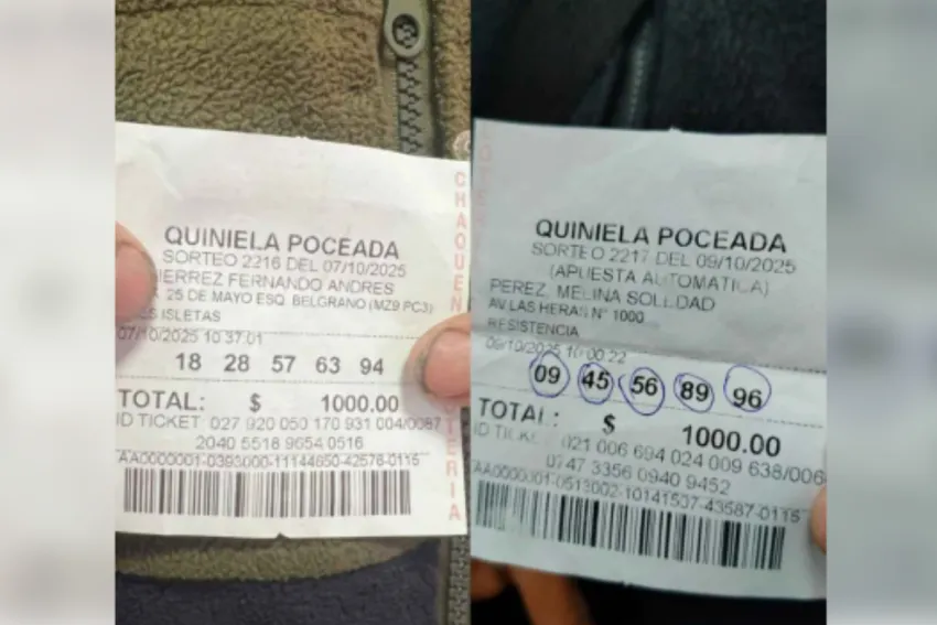 Luego fue el turno de un vecino del barrio 13 de Diciembre de Resistencia, quien sumó los cinco aciertos durante la edición de la Quiniela Poceada del jueves 9 de octubre. Sus números de la suerte fueron el 09, 45, 56, 89 y 96,producto de una apuesta automática.