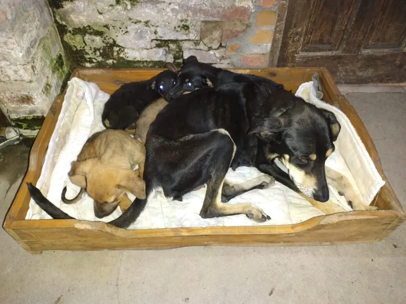 Natalia Valdueza contó que rescató a una mamá perra en grave estado junto a sus cuatro cachorros. Necesita colaboración para costear los gastos veterinarios y encontrarles tránsito.