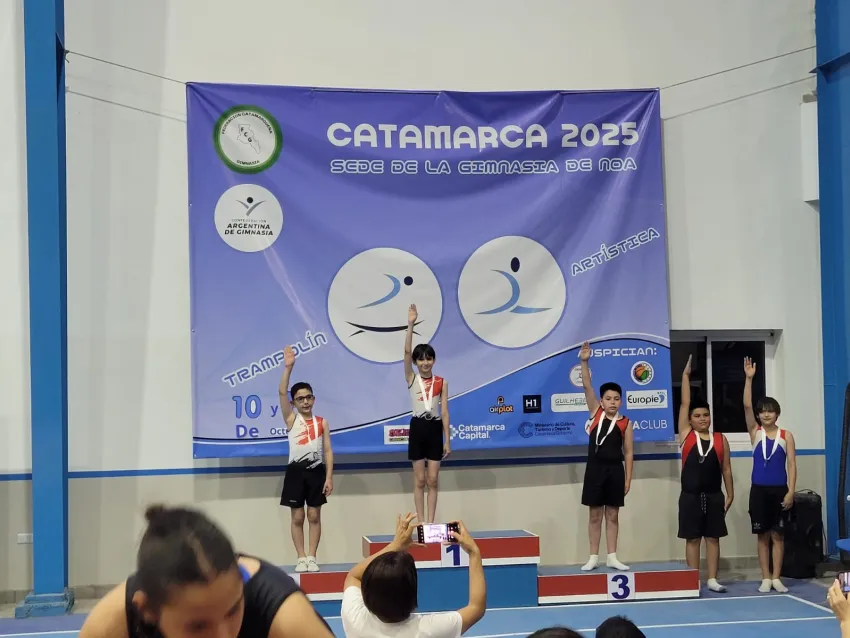 Con solo 10 años, el joven deportista obtuvo el primer puesto en trampolín y doble minitramp durante el torneo regional que reunió a delegaciones del norte argentino.