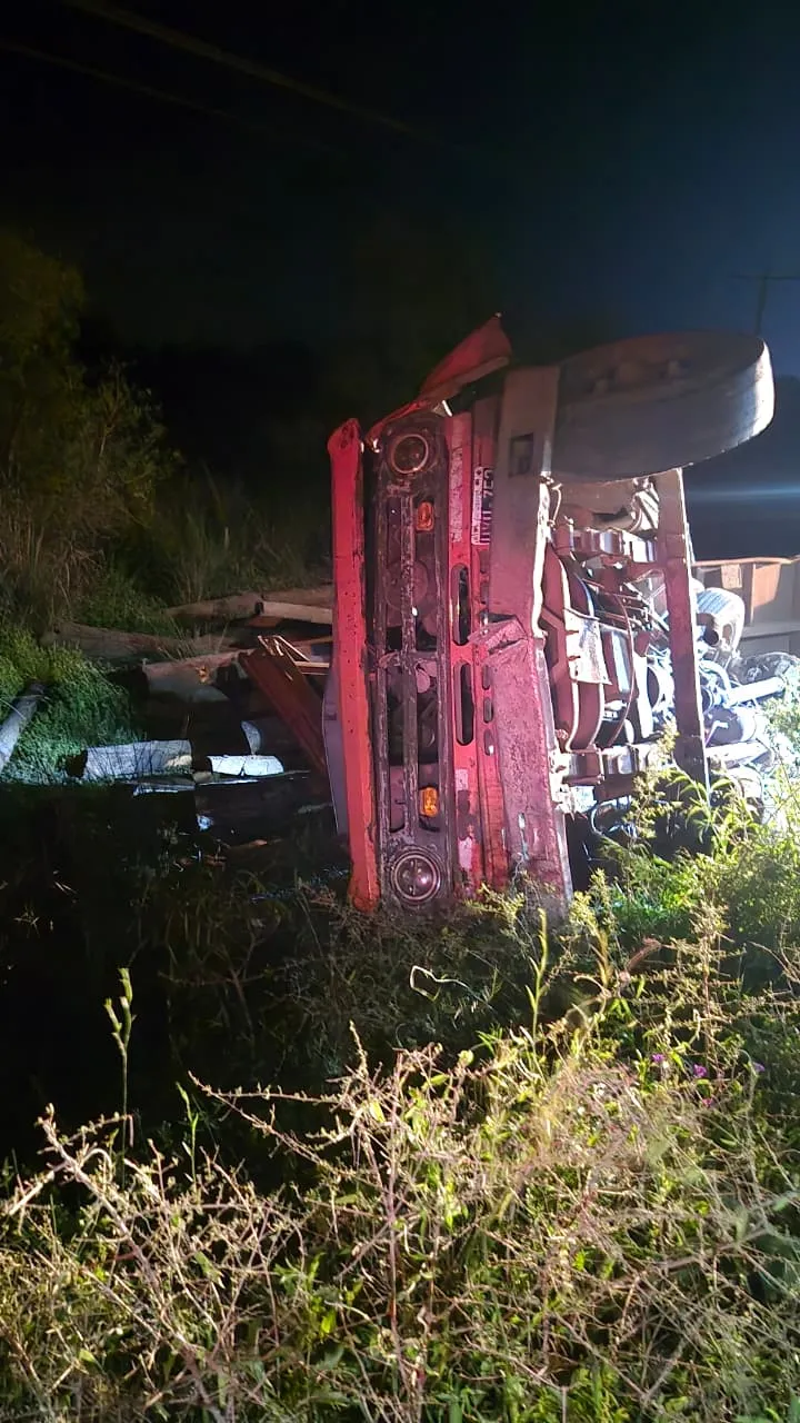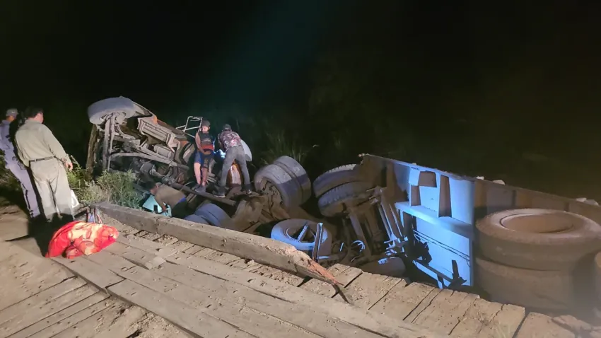 Durante la madrugada de este jueves, personal policial de la Comisaría de Cote Lai intervino en un siniestro vial ocurrido sobre la Ruta Provincial N° 49 kilómetro 5, donde un camión que transportaba rollizos despistó y cayó parcialmente debajo de un puente de vigas de madera.