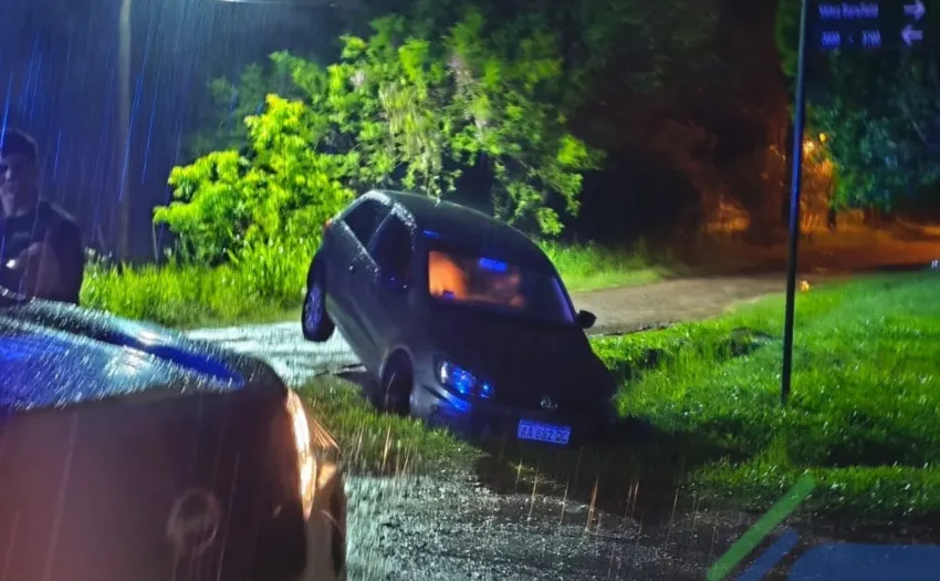 Un auto cayó en una zanja en Resistencia por la lluvia y la baja visibilidad
