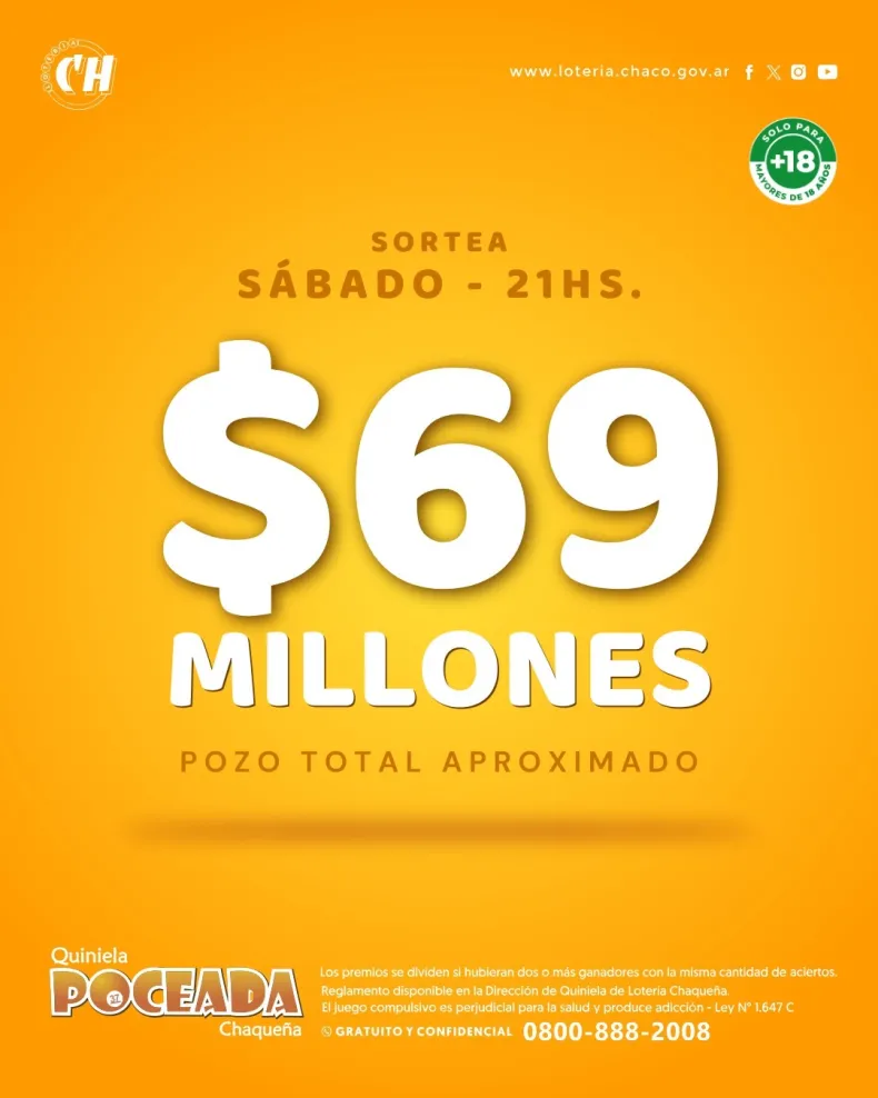 Tras este enorme premio, la Poceada Chaqueña vuelve a tener acción esta noche, sábado 18 de octubre, con un pozo base de 69 millones de pesos. Los jugadores de toda la provincia esperan la nueva oportunidad de convertirse en millonarios, y la expectativa crece tras el récord obtenido en la última semana.