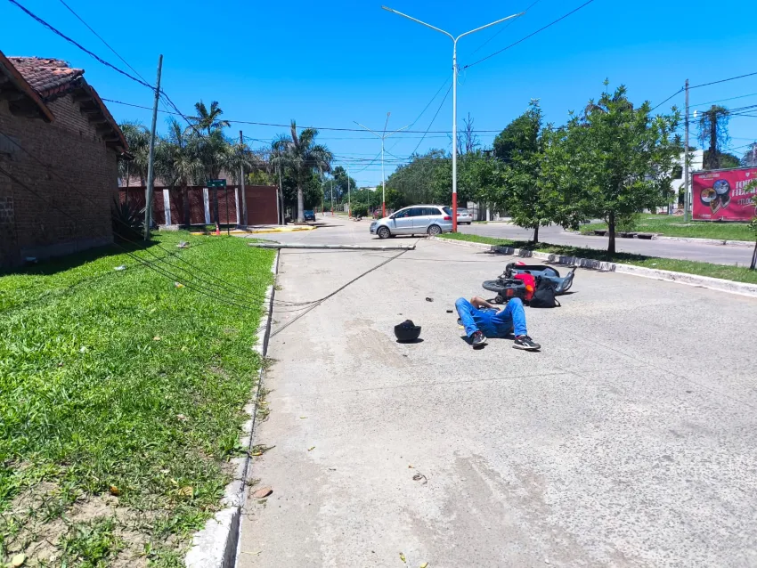 Este martes al mediodía, un motociclista resultó lesionado tras impactar contra postes caídos sobre la avenida Rissione y José Hernández, en la ciudad de Resistencia.
