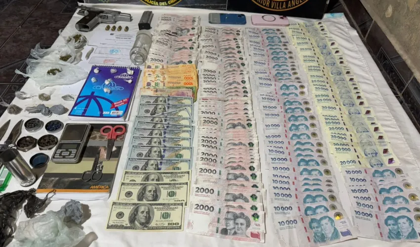 En un importante operativo antidrogas llevado a cabo durante la tarde de este martes por la División Operaciones Drogas Interior Villa Ángela, se realizaron dos allanamientos simultáneos en distintos puntos de la ciudad, arrojando como resultado la detención de tres personas, el secuestro de estupefacientes, dinero en efectivo, armas y diversos elementos relacionados al narcomenudeo.