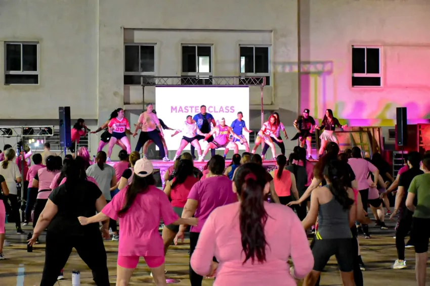 La actividad se llevó a cabo en el marco del Mes Rosa, de concientización sobre el cáncer de mama, y estuvo a cargo del instructor Lucas Vargas.