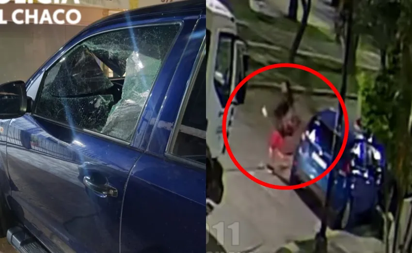 Rompió el vidrio de una Amarok en pleno centro y escapó: quedó todo filmado