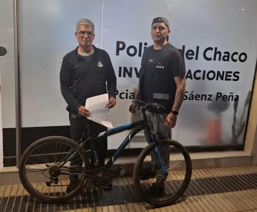 Se confirmó que la bicicleta coincidía con la denunciada como sustraída ante la Comisaría Primera, cuyo propietario había aportado material fílmico del hecho. Por disposición de la Fiscalía de Investigación Penal N.º 1, el elemento recuperado fue restituido al damnificado previo reconocimiento. La investigación continúa para dar con el autor del ilícito.