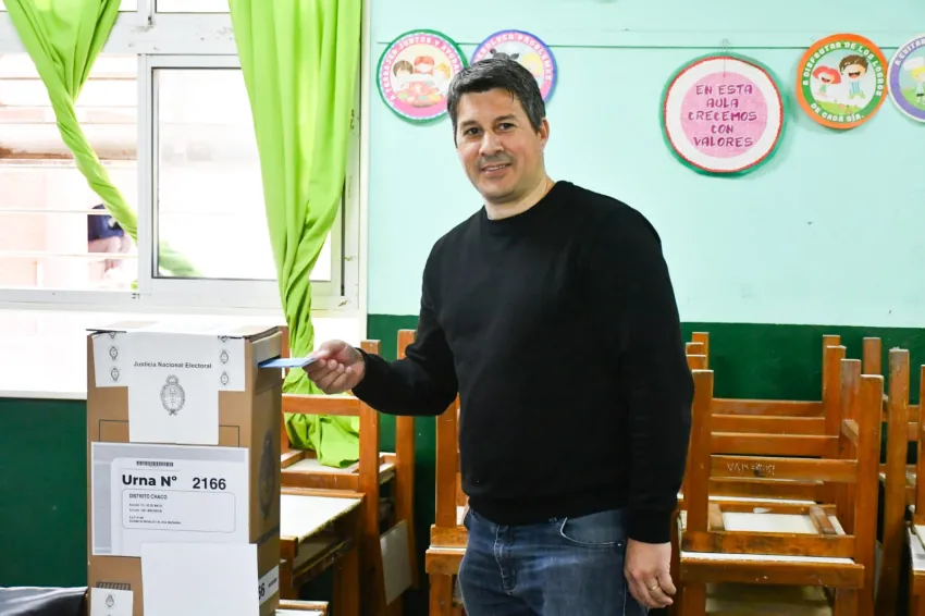 El intendente de Machagai y candidato a diputado nacional, Juan Manuel García, emitió su voto este domingo en la Escuela de Educación Primaria Nº 940, en una jornada electoral que comenzó con normalidad en toda la localidad.