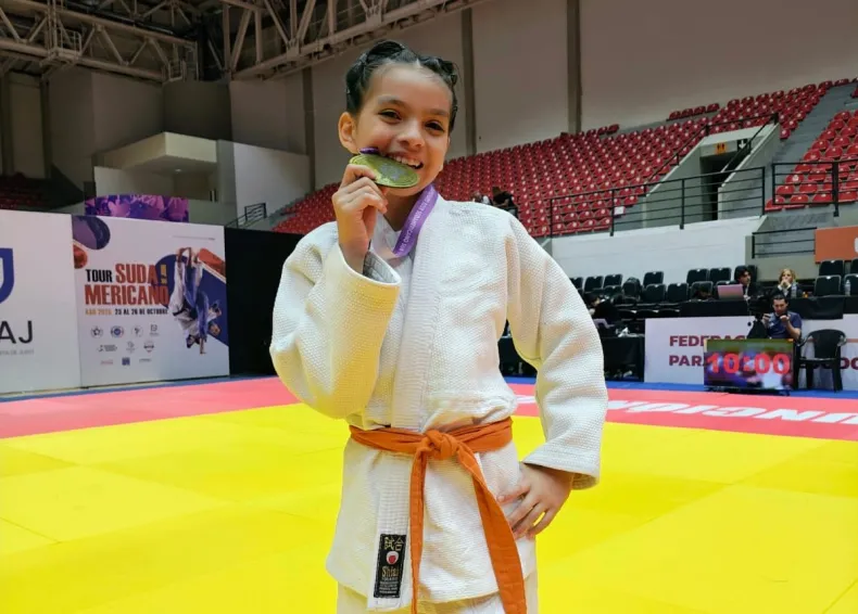 Luciana sonríe tímidamente, pero con la confianza de quien ya ha subido varias veces al podio. "Empezó a hacer judo cuando tenía tres años, o un poco menos. Le gusta competir, ganar y aprender de cada lucha", cuenta su papá Gustavo.