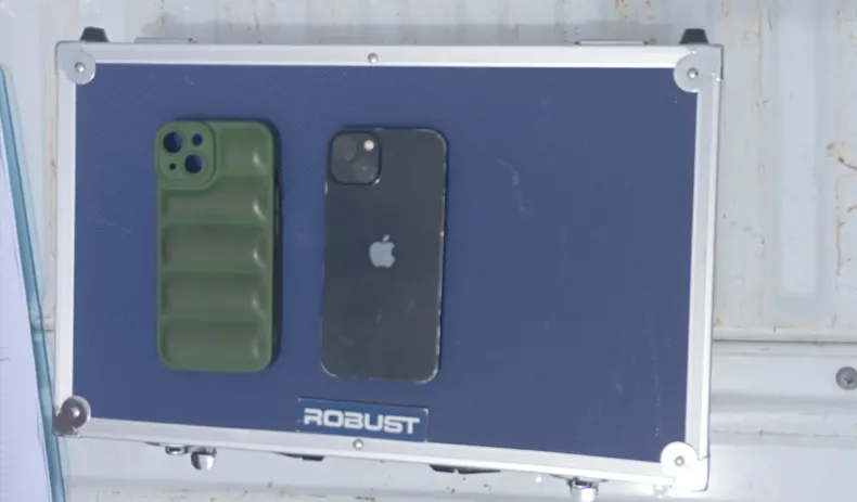 El teléfono, un iPhone con protector verde, fue secuestrado y se aguarda la intervención del personal de la División Cibercrimen para garantizar la cadena de custodia del dispositivo.