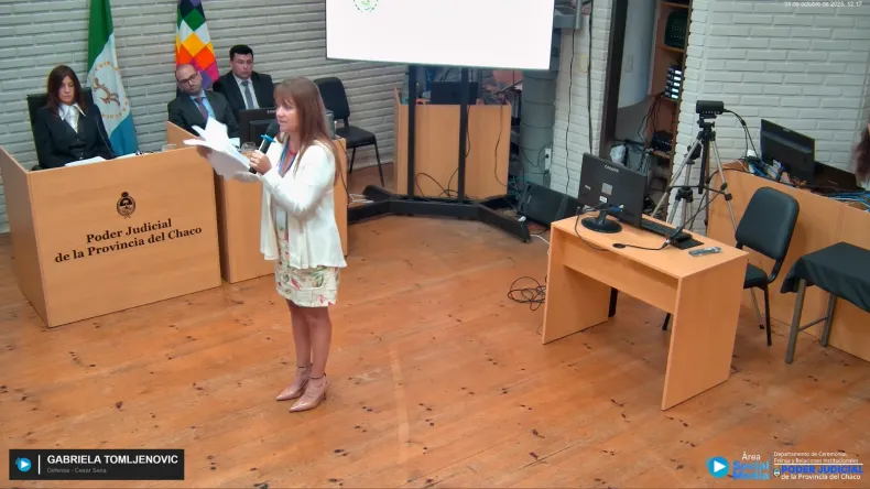 Este viernes, luego de la instrucción de la jueza Dolly Fernández, cada una de las partes comenzó a brindar sus alegatos. Luego de la exposición del Equipo Público Fiscal y las querellas, fue el turno de los abogados defensores de los imputados de tomar la palabra. A su turno, Gabriela Tomljenovic, defensora del principal imputado, César Sena,cuestionó en varias ocasiones la investigación y conclusiones del Ministerio Público Fiscal y mencionó "manipulación de evidencia".