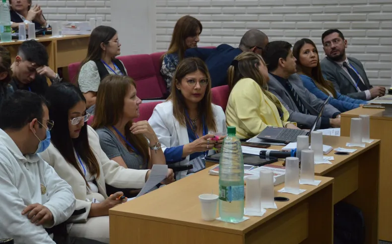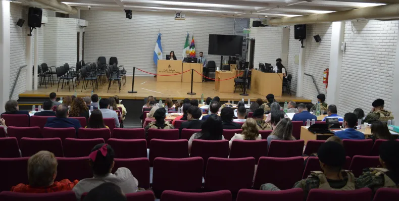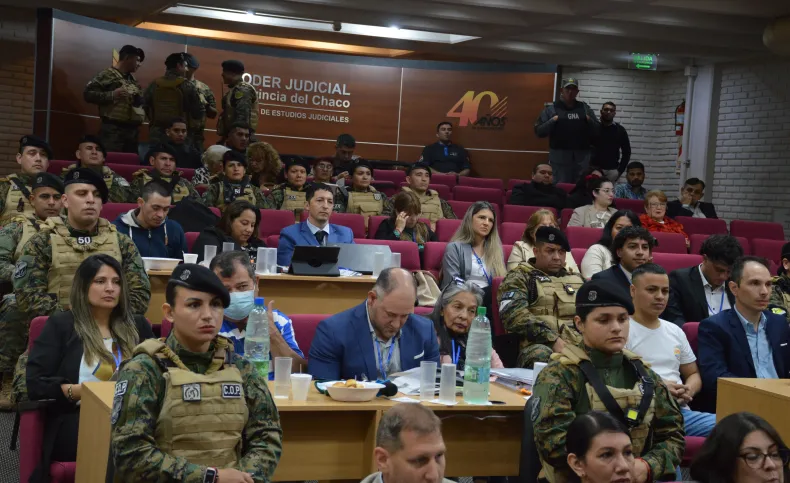 Así se ve por dentro el Centro de Estudios Judiciales, donde se desarrolla el juicio por jurados en la causa"Sena, César Mario Alejandro y otros s/ femicidio", por la muerte de Cecilia Strzyzowski. Este proceso judicial histórico reúne a un jurado popular integrado por 12 titulares y 8 suplentes, quienes escuchan cada testimonio en el auditorio principal del edificio.
