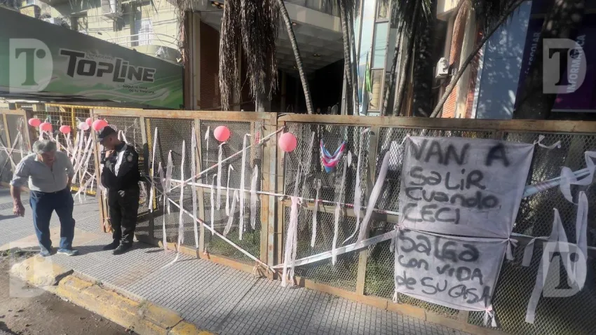 Con un Centro de Estudios Judiciales intervenidos con globos, carteles y cintas de color rosa, inició la sexta jornada del juicio por el femicidio de la joven. "Van a salir cuando Ceci salga con vida de su casa", expresa uno de los mensajes pegados a las vallas de seguridad.