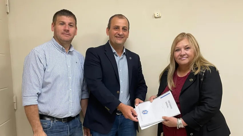 La presidente del Poder Legislativo, Carmen Delgado, acompañada por el diputado Sebastián Lazzarini, recibió este lunes al comisario general Ricardo Urturi, titular del Órgano de Control Institucional (OCI) de la Policía del Chaco, quien hizo entrega formal del Informe Anual 2025 con el detalle del trabajo desarrollado por el organismo durante el último período.